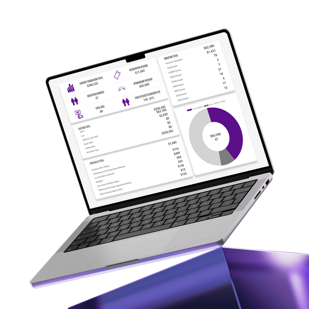 Everything you need for successful events: auctions, ticketing, donations, and reporting - with white-glove support included.